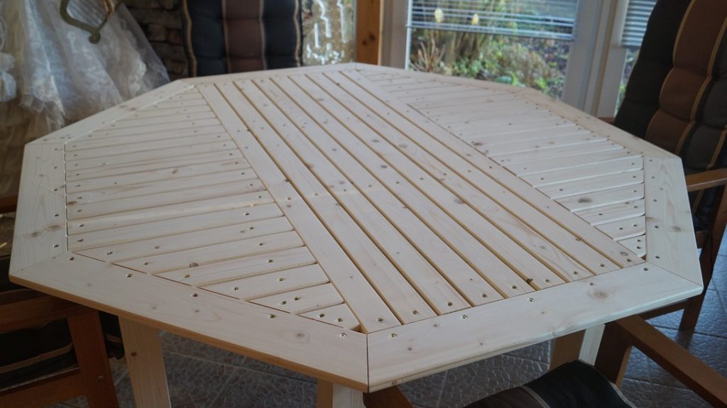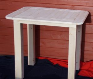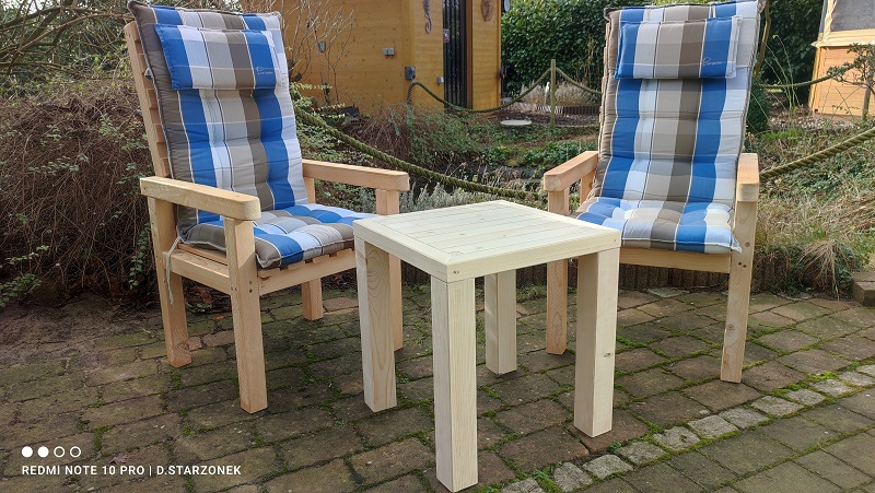 Ein anderer Gartenbesitzer rief mich an und erzählte mir von seiner kleinen Terrasse am Hauseingang. Dort wollte er gern zwei Stühle und einen passenden Tisch haben. Der Handel konnte ihm keine passende Lösung anbieten, und ich war in der Lage, einen Terrassentisch nach Maß für ihn zu erstellen.