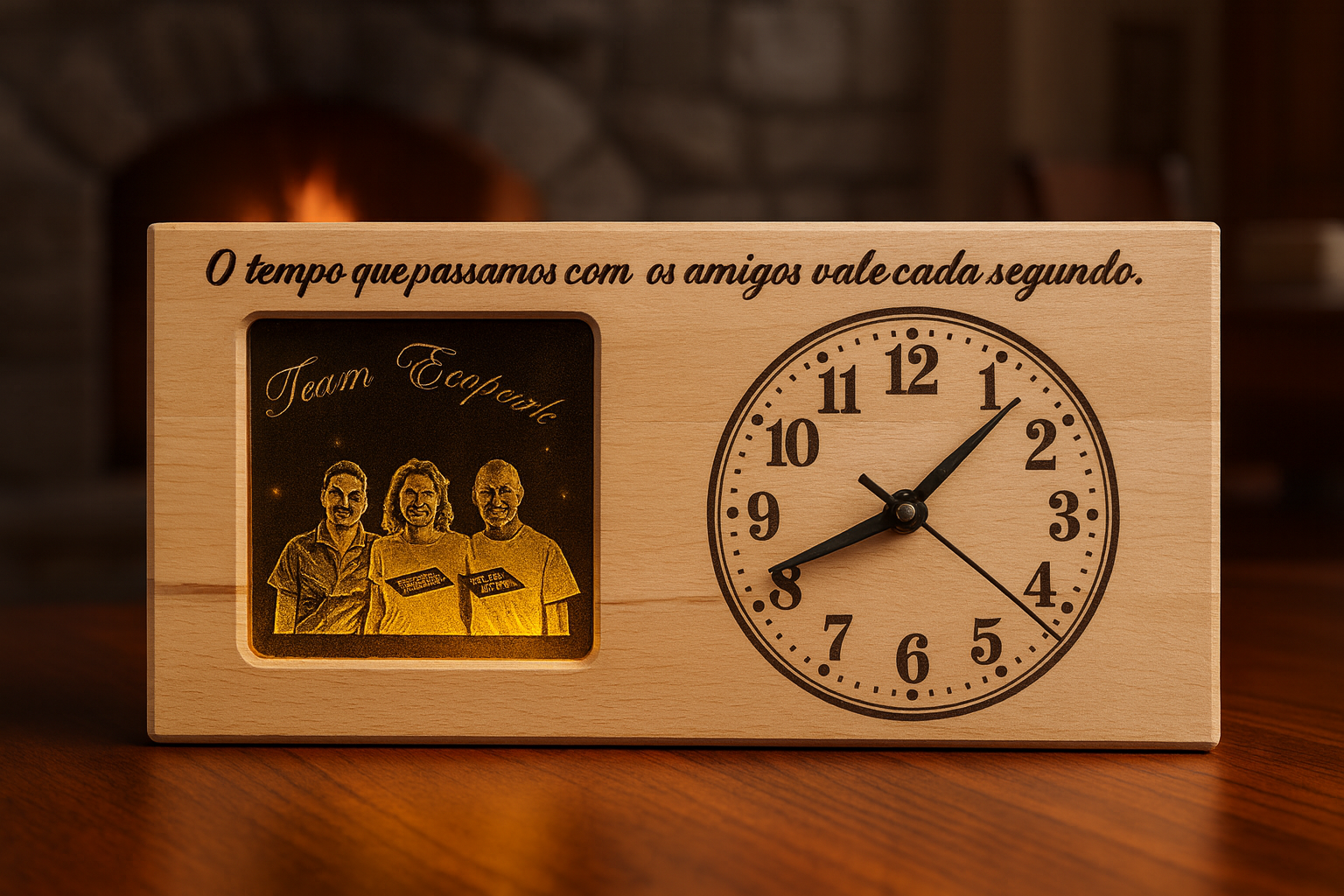 Ein warmes Licht für besondere Momente unsere Holzuhr mit Gravur.