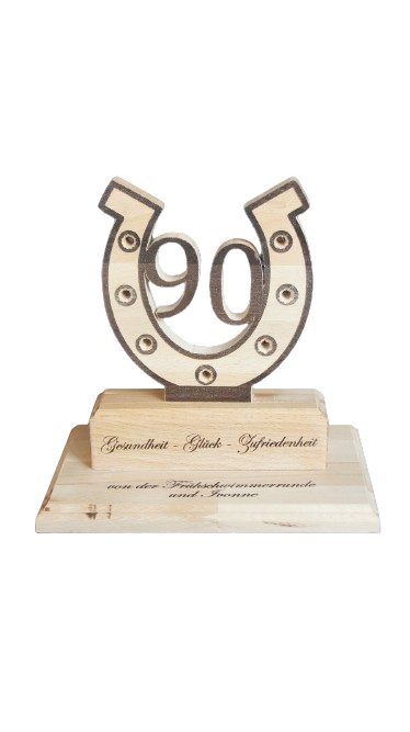 Feiere besondere Momente mit einem einzigartigen Geschenk! Unser handgefertigtes Hufeisen aus hochwertigem Buchenleimholz mit Sockel und personalisierter Lasergravur ist ideal für Geburtstage, Jubiläen oder andere bedeutende Anlässe.